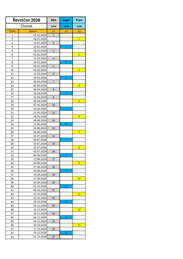 Plán svozů 2026 Typ: PDF dokument, Velikost: 68.22 kB