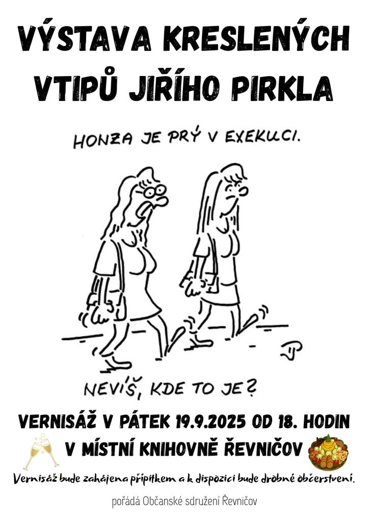 V prostorách místní knihovny budou k vidění kreslené vtipy českého kreslíře, karikaturisty a ilustrátora Jiřího Pirkla, který vyrůstal v Řevničově.
