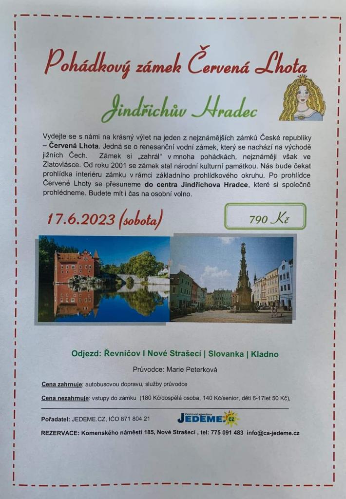 Zájezd na zámek Červená Lhota a Jindřichův Hradec Cena zájezdu 790,-Kč Přihlášení na poště